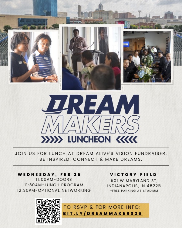 DREAM Alive scholars and mentors experienced an unforgettable evening at the Indiana Pacers Celebration of Mentoring Night last month. Forty-five scholars gathered at Gainbridge Fieldhouse for a powerful night of connection and inspiration, beginning with a pre-game mentoring panel featuring our Middle School Director, Destiney Lee, and followed by the excitement of a Pacers game—many scholars’ first professional basketball experience. The evening’s highlight came post-game, when scholars met Pacers player Kam Jones, asking thoughtful questions about perseverance, goals, and life in the NBA. Read the full story here.